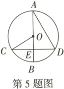 5. 如图,AB 是⊙O 的直径,弦 CD⊥AB,垂足为点 E,若∠ADC=60°,CD=4√{3},则⊙O 的半径为(