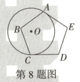 8. 如图,正五边形 ABCDE 与⊙O 相切于点 A,C,⊙O 的半径为 5,则劣弧⌢AC 的长为(