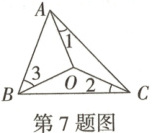 7. 如图,O 是△ABC 的外心,则∠1+∠2+∠3=(