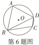 6. 如图,四边形 ABCD 内接于⊙O,⌢AB=⌢BC,连接 BD,若∠ABC=70°,则∠BDC 的度数为(