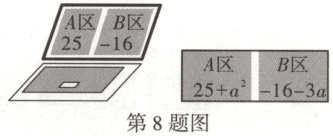 8. (2020河北21题)有一电脑程序:每按一次按键,屏幕的$A$区就会自动加上$a^{2}$,同时$B$区就会自动减去$3a$,且均显示化简后的结果. 已知$A$,$B$两区初始显示的分别是25和$-16$,如图.
