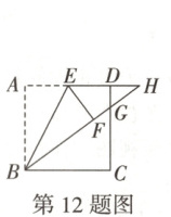 12. 万唯原创 如图,在正方形ABCD中,E为AD的中点,将正方形ABCD沿BE折叠,点A落在点F处,BF的延长线交CD于点G,交AD的延长线于点H,若AB=4,则DH的长为(