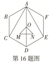 16. (2025 样卷)如图,O是正六边形ABCDEF的中心,AB=2,点M,N分别为△ACD,△AED的内心,则OM的长为
