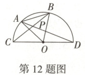 12. 如图,等边△OAB 的边长为$\frac{1}{2},$半圆 O 的直径为 1,连接 AD,BC 相交于点 P,将等边△OAB 从 OA 与 OC 重合的位置开始,绕点 O 顺时针旋转α(0°≤α≤120°). 下列结论正确的是(