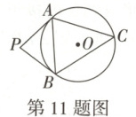 11. 如图,△ABC 内接于⊙O,PA,PB 是⊙O 的两条切线,若∠C=50°,则∠PBA 的度数为(