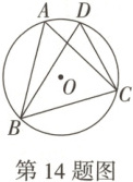 14. 如图,⊙O 的两条相交弦 AC,BD,∠ACB=∠CDB=60°,AC=2√{3},则⊙O 的面积是