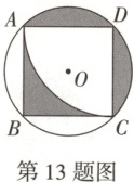 13. 如图,正方形 ABCD 内接于⊙O,以点 D 为圆心,DA 的长为半径画弧,得到⌢AC,若 AB=2,则阴影部分面积为