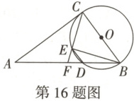 16. 如图,已知△ABC,BC 是⊙O 的直径,AC 是⊙O 的切线,F 是 AB 的中点,连接 CF,AB,CF 分别交⊙O 于点 D,E,连接 BE,DE.