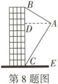 8. 如图,为测量某建筑物的高,测量小组利用一架无人机A对建筑物BC的点B和点C进行观测,则下列说法错误的是 (