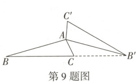 9. (2025样卷)如图,将 $ △ABC $ 绕点A逆时针旋转 $ α $ 得到 $ △AB'C' $.当点 $ B,C,B' $ 在同一直线上, $ ∠BAC = 100^{\circ},α = 150^{\circ} $ 时, $ ∠C' = $ (