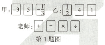 (1)第一轮甲、乙分别出$-3,\frac{1}{2}$,老师出÷,求第一轮的计算结果,并判断谁获胜;