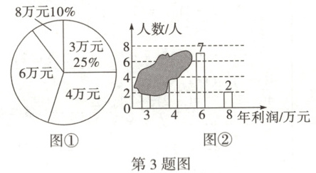 所创年利润为$4$万元的人数为$20 - 7 - 2 - 5 = 6$(人),