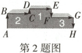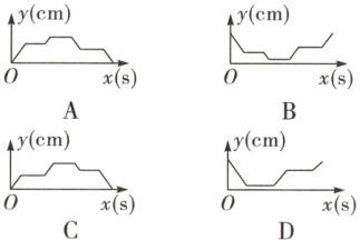 2. 如图为一个放在水平地面上的领奖台,一只蚂蚁沿路线$A\rightarrow B\rightarrow C\rightarrow D\rightarrow E\rightarrow F\rightarrow G\rightarrow H$匀速爬行,设蚂蚁距离水平地面的高度为$y(cm)$,爬行时间为$x(s)$,则$y$与$x$关系的图象大致是(