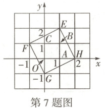 7. (2025河北12题)在平面直角坐标系中,横、纵坐标都是整数的点称为整点.如图,正方形$EFGH$与正方形$OABC$的顶点均为整点.若只将正方形$EFGH$平移,使其内部(不含边界)有且只有$A,B,C$三个整点,则平移后点$E$的对应点坐标为(