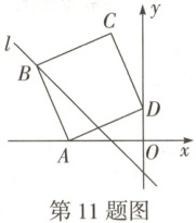 11. 如图,正方形$ABCD$的顶点$A,D$分别在$x$轴,$y$轴上,点$B(-7,5)$在直线$l:y = kx - 2$上,将正方形$ABCD$沿$y$轴向下平移$m$个单位长度后,点$C$恰好落在直线$l$上.则$m$的值为(