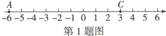 1. (8分) 已知四个有理数A,B,C,D,其中A,C两数在数轴上的位置如图,若$\frac{A - C}{2} = B$.