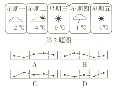 2. (2024河北1题)如图显示了某地连续$5$天的日最低气温,则能表示这$5$天日最低气温变化情况的是()