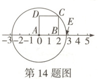 14. 万唯原创 如图,正方形$ ABCD $的顶点$ A,B $分别与数轴上表示数$ 0,2 $的点重合. 点$ C $在$ \odot A $上,则$ \odot A $与数轴正半轴的交点$ E $表示的数为