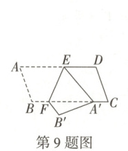 9. 万唯原创 如图,将$ □ ABCD $折叠,使得折叠后点$ A $落在$ BC $边上的点$ A' $处,点$ B $落在点$ B' $处,$ EF $是折痕,若$ \angle BFE=115^{\circ},\angle FA'B'=20^{\circ} $,则$ \angle C $的度数为 (