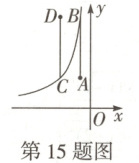 15. 如图,线段$ AB $与$ y $轴平行,点$ A $的坐标为$ (-1,a) $,将线段$ AB $沿着$ x $轴水平向左平移得到线段$ CD $,点$ B $的对应点$ D $的坐标为$ (-3,a+6) $,若反比例函数$ y=\frac{k}{x}(x < 0) $的图象同时经过点$ B $和点$ C $,则$ k $的值为