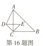 16. 万唯原创 如图,$ \triangle ABC $是等腰直角三角形,$ AC=BC=3 $,点$ D,E $分别在$ AC,BC $边上,且$ CD=CE=\sqrt{2} $,连接$ DE $,将$ \triangle CDE $绕点$ C $逆时针旋转$ \alpha (0^{\circ} \leqslant \alpha \leqslant 90^{\circ}) $,连接$ AD $,当$ DE // CB $时,点$ E $到直线$ AD $的距离为