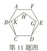11. 如图,在正六边形$ ABCDEF $中,作正五边形$ HKCDG $,连接$ BK $,则$ \angle ABK $的度数为 (