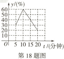18. (8分)(2025黑白卷)食用果蔬前,适当浸泡可降低农药的残留. 某检测小组针对同种瓜果蔬菜研究了采用清水浸泡不同时长对某种农药去除率的影响. 记浸泡时间为t分钟,农药的去除率为y%,部分实验数据记录如图.
