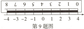 9. 将刻度尺与数轴按如图所示位置放置(数轴的单位长度是 $1$ cm),刻度尺上“$0$ cm”和“$8$ cm”分别对应数轴上的 $4$ 和 $-4$,那么刻度尺上的“$4.8$ cm”对应数轴上的数为(