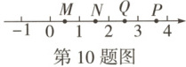 10. 如图,在数轴上的四个点中,对应的数最接近 $\sqrt{13}$ 的是(