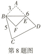 8. 万唯原创 四边形 $ ABCD $ 的边长如图所示,$ \angle BAD = 90^{\circ} $,$ \angle ABC = 120^{\circ} $,$ E $ 为边 $ AD $ 上一动点(不与 $ A $,$ D $ 两点重合),连接 $ BE $,将 $ \triangle ABE $ 沿直线 $ BE $ 折叠,点 $ A $ 的对应点为点 $ F $,则点 $ C $ 与点 $ F $ 之间的距离不可能是(