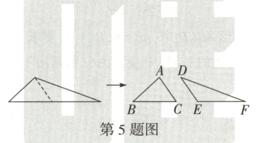 5. 如图,将一个三角形沿过一个顶点的虚线剪开后得到 $ \triangle ABC $ 和 $ \triangle DEF $,则下列说法正确的是(