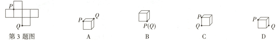 3. 如图,点 $ P $,$ Q $ 是一正方体展开图上的两个顶点,则顶点 $ P $,$ Q $ 在正方体上的位置标记正确的是(