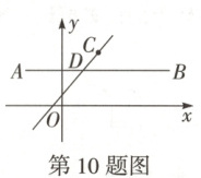 10. 万唯原创 如图,在平面直角坐标系中,$ A(-2,2) $,$ B(6,2) $,$ C(2,3) $,点 $ D $ 是线段 $ AB $ 上一点(不与点 $ A $,$ B $ 重合),直线 $ CD $ 的解析式为 $ y = kx + b(k \neq 0) $,当 $ y $ 随 $ x $ 的增大而减小时,点 $ D $ 的坐标可以是(