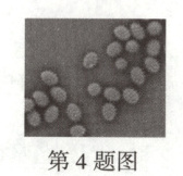 4. 一种黄菊的花粉在显微镜下看到的样子如图所示,测得一颗花粉粒的直径约为50 μm,已知$1m = 1000000\mu m$,当$50\mu m = 5.0×10^{-3}$□时,□表示的长度单位是(