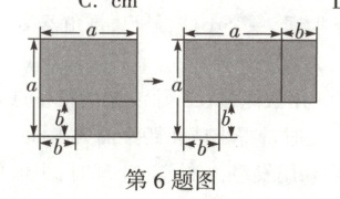 6. (2024张家口模拟)如图,从边长为$a$的大正方形中剪掉一个边长为$b$的小正方形,再将剩下的阴影部分剪开,拼成右边的矩形. 根据图形的变化过程可以验证下列哪一个等式成立(