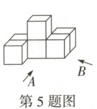 5. 如图是由大小相同的小正方体搭成的几何体,小明分别以$A$和$B$为正方向观察该几何体,则他从两个方向观察到的三视图(