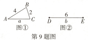 9. 万唯原创 有 $ a,b $ 两根小棒如图所示,现要将 $ a,b $ 两根小棒中的一根剪成两段与另外一根围成三角形,那么下面剪法中,一定能围成三角形的是 (