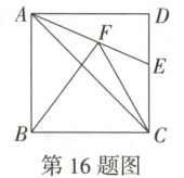 16. 万唯原创 如图,在边长为 5 的正方形 $ ABCD $ 中,连接 $ AC,AE $ 平分 $ ∠CAD $,交边 $ CD $ 于点 $ E,F $ 为线段 $ AE $ 上一点,连接 $ BF,CF $,则 $ △BCF $ 周长的最小值为