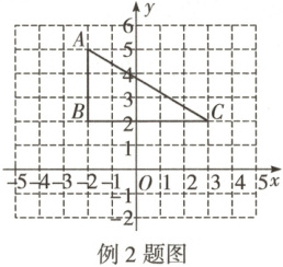 如图,在平面直角坐标系中,点$A(-2,5)$,$B(-2,2)$,$C(3,2)$,连接$AB$,$AC$,$BC$。