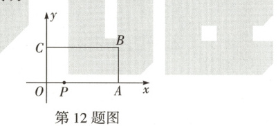 12. 万唯原创 如图,在矩形 OABC 中,点$A(4,0)$,点$B(4,2)$,在线段 OA 的四等分点 P(靠近点 O)处有一光点沿与矩形边夹角$45^{\circ}$方向向矩形内弹出,与矩形 OABC 的边撞击后,继续按相同的方式弹射,即光点每次的弹射路线与矩形 OABC 的边所成的角均相等,直至光点第一次回到点 P 停止,则光点第 5 次与矩形 OABC 边的撞击点坐标为(
