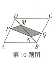 10. 如图,在$□ ABCD$中,$∠A$为锐角,且$AB≠AD$,点 M,N 是 BD 上的点(不与点 B,D 重合),$DM = BN$,点 P,Q 分别在 AD,BC 上,添加下列条件