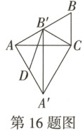 16. 如图,在$Rt\triangle ABC$中,$∠ACB = 90^{\circ}$,$∠B = 60^{\circ}$,$BC = 2$,将$\triangle ABC$绕点 C 逆时针旋转得到$\triangle A'B'C$,且$B'$恰好落在 AB 上,连接$AA'$,取$AA'$的中点 D,连接$B'D$,则$B'D$的值为
