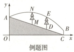 (3)若DE,MN为两棵等高小树(MN在左侧,小树粗细忽略不计,点M,D均在斜坡上且与点C不重合),抛物线恰好经过E,N两点。