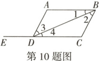 10. (冀教七下练习题改编)如图,下面能判断AB//CD的条件是(