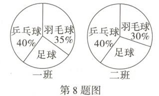 8. 万唯原创 体育老师对一班和二班学生参加体育兴趣小组的情况进行了统计(每人只能参加一个兴趣