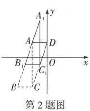 2. 如图,在平面直角坐标系中,$\triangle ABC$的顶点A,B的坐标分别为$(-2,2)$,$(-4,-4)$,$BC// x$轴,以AB,BC为边作平行四边形ABCD,点D恰好在y轴上,将$\triangle ABC$沿CD向上平移得到$\triangle A_{1}B_{1}C_{1}$,当边BC扫过图形的面积为6时,点$A_{1}$的坐标为(