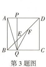 3. 如图,在正方形ABCD中,P,Q分别是AD,BC上的点(不与点D,C重合),$PQ// AB$,BD与PQ交于点E,取DE的中点F,连接AQ,FQ,则$\frac {AQ}{QF}$的值为