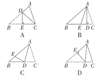 4. 数学综合实践课上,数学兴趣小组根据等腰三角形的性质联想到,一个三角形中,如果一条边比另一条边长,那么长边所对的角大于短边所对的角. 如图,在$ \triangle ABC $中,$ AB > AC $,下面操作不能说明$ \angle C > \angle B $的是 (