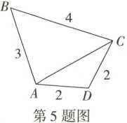 5. (2023河北5题)四边形$ ABCD $的边长如图所示,对角线$ AC $的长度随四边形形状的改变而变化. 当$ \triangle ABC $为等腰三角形时,对角线$ AC $的长为 (