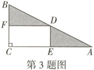 3. (人教八下习题改编)如图,在$\triangle ABC$上裁出一个矩形$CEDF$和两个全等的$\triangle ADE$和$\triangle DBF$,若$CF = 3$,$DF = 6$,则$\triangle ABC$的面积为(